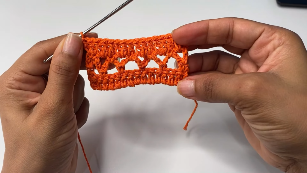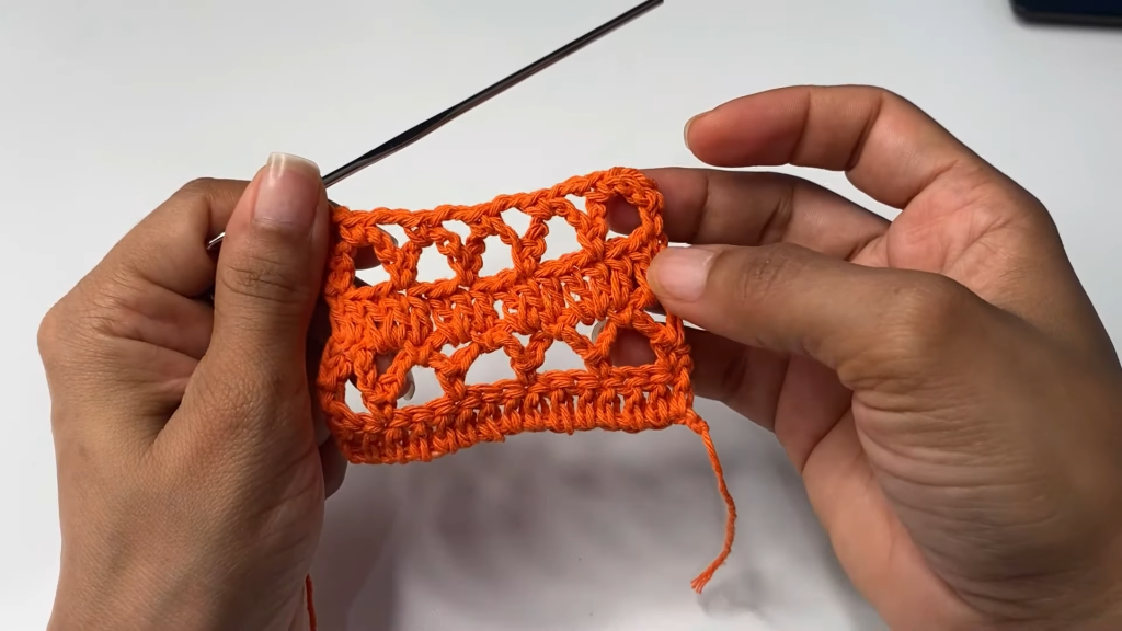 - Counting Check: On Row 4 (the refill row), it is easy to accidentally put too many stitches in the gaps. Remember the rhythm: 2 in the space, 1 in the stitch. This ensures your row stays flat and doesn’t ruffle.