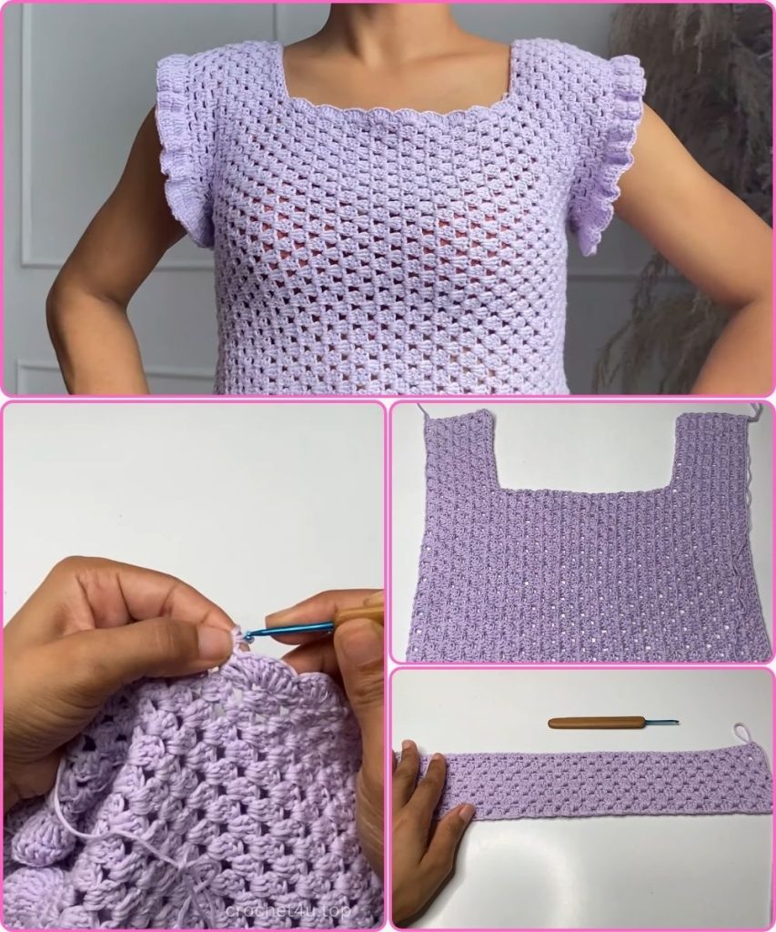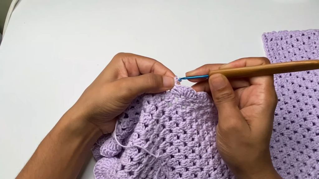 - The Final Touch: The video adds a beautiful scalloped edge to the sleeves and neckline, using a combination of SC and Fan clusters (5 DC into a space, SC into the next space). This is the perfect border to complement the main stitch!