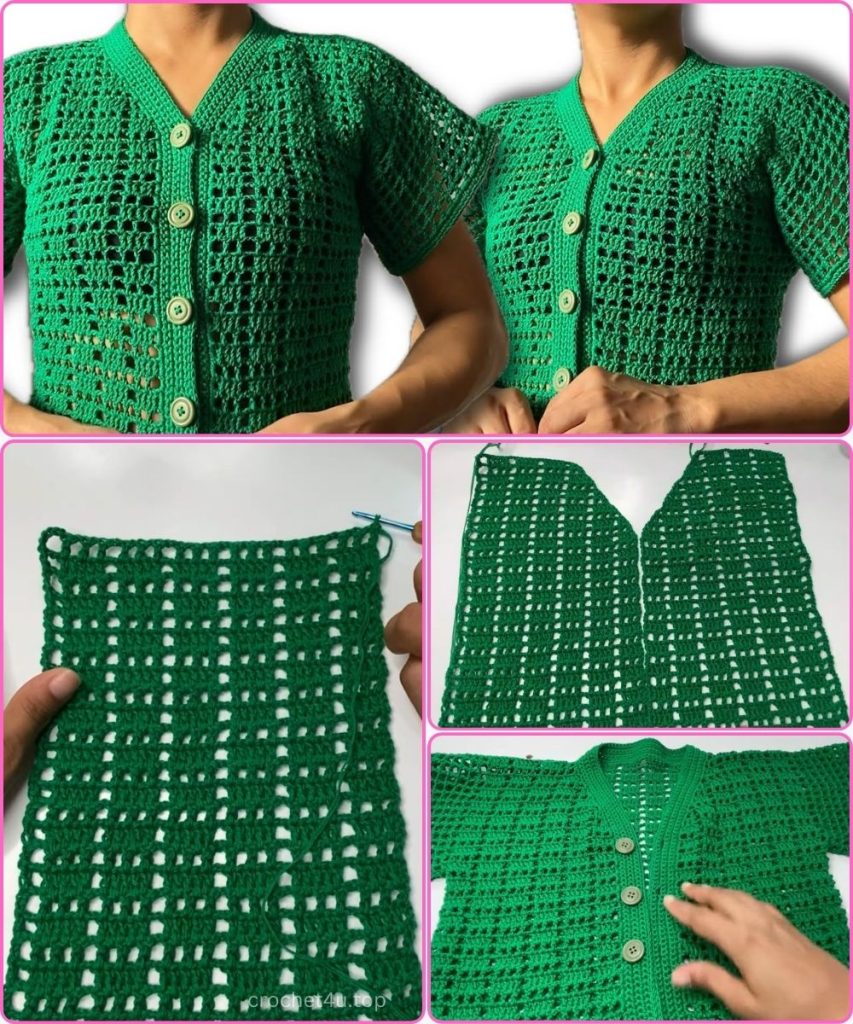 The genius of this pattern lies in its structure: the solid blocks give the fabric body and allow for easy seaming, while the open trellis work keeps the garment breathable and visually light. It’s a pattern that looks far more challenging than it is, relying only on simple chains and double crochets.