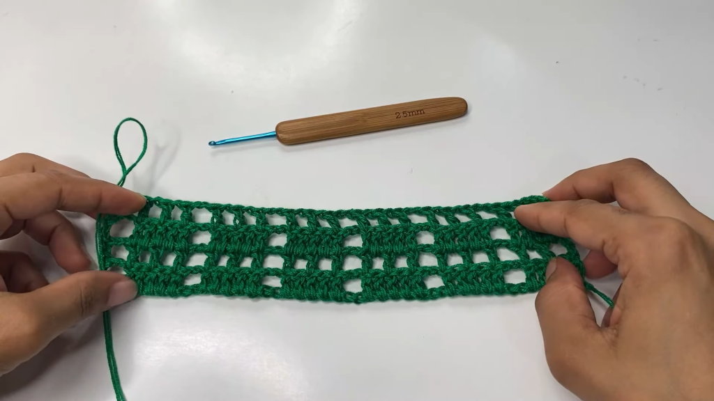 - Row 2 (The Mesh/Trellis Row): This row creates the signature open work over the solid blocks.