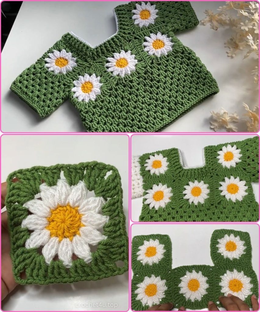Today, we are diving into a project that perfectly captures the spirit of handmade fashion: a beautiful, custom-fit blouse constructed entirely from stunning Granny Squares. The motif we are using is a vibrant “Sunburst Bloom,” starting with a dense floral center and transitioning into a structured square for easy joining.