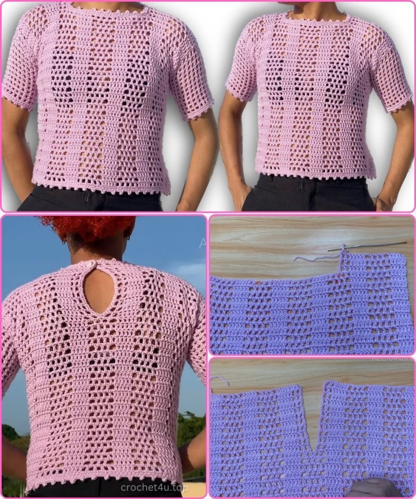 - Body: Work the pattern (repeating Rows 2 & 3) until you reach the necessary length for the blouse body (e.g., 35 cm in the video).