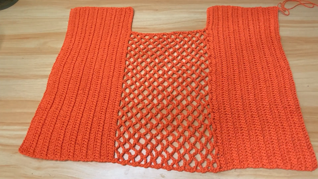 - Repeat: Repeat the BLO DC row until the piece measures your Shoulder/Sleeve Width (e.g., 15 rows or 14 cm in the video). This completes the width of the shoulder and upper sleeve.