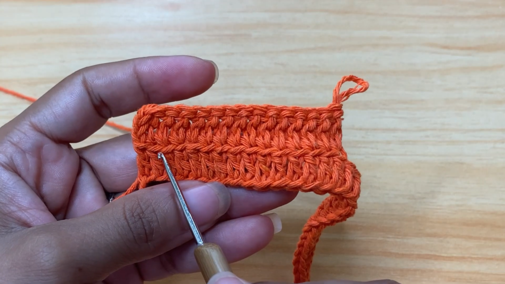 - End: Ch 2. DC into the last SC of the previous row (this ensures the turning chain aligns for the next row).