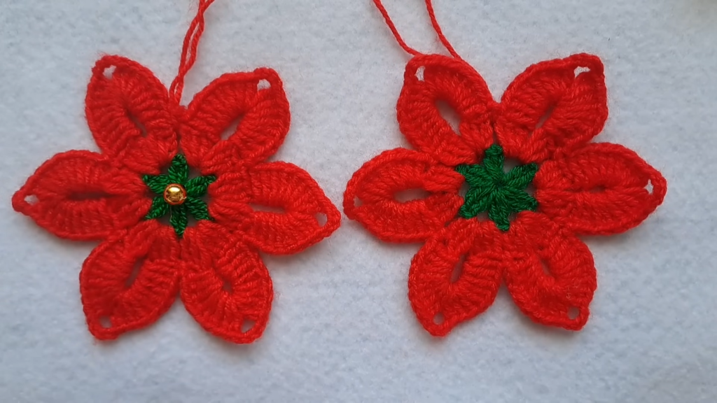 Welcome to the pattern for the gorgeous Crochet Poinsettia Christmas Flower! As the signature bloom of the holiday season, this flower makes a stunning ornament, appliqué, or garland motif. The design captured in the video combines the traditional green base with the iconic red petals to create a dimensional, elegant piece that is both fast to work up and wonderfully effective.