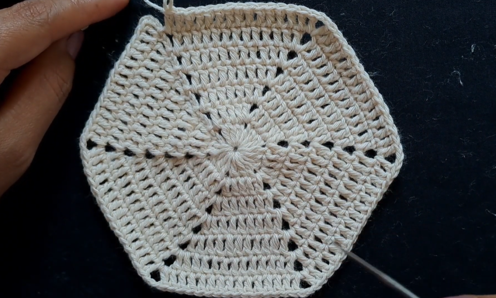 - Repeat this process to add more hexagons until your blanket or garment is complete!