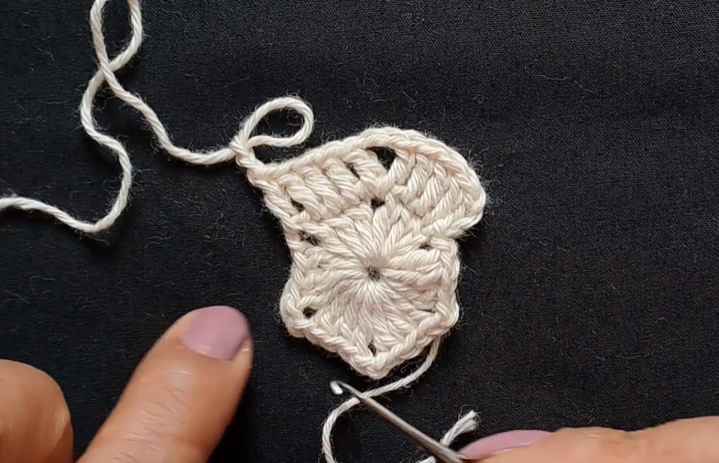 - Repeat: [Work 3 DC into the ring. Ch 2.] Rep from * 5 more times. (You will have 6 DC groups and 6 Ch-2 corner spaces.)