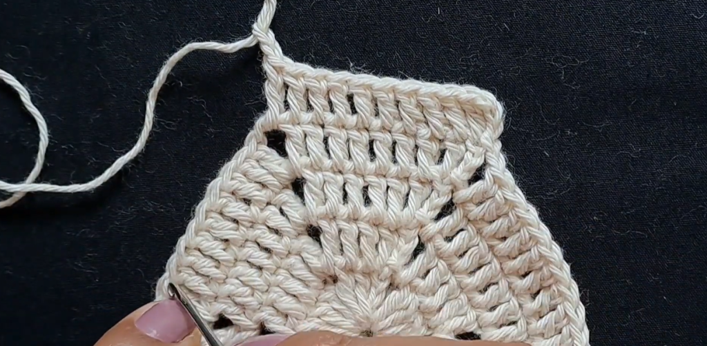 - First Corner: Work (1 DC, Ch 2, 1 DC) into the Ch-2 corner space.