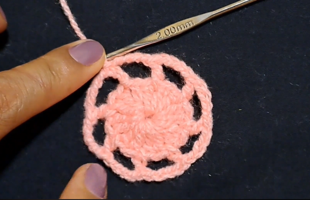 - Repeat: Work 6 DC into every Ch-4 space around. (You will have 8 shells).