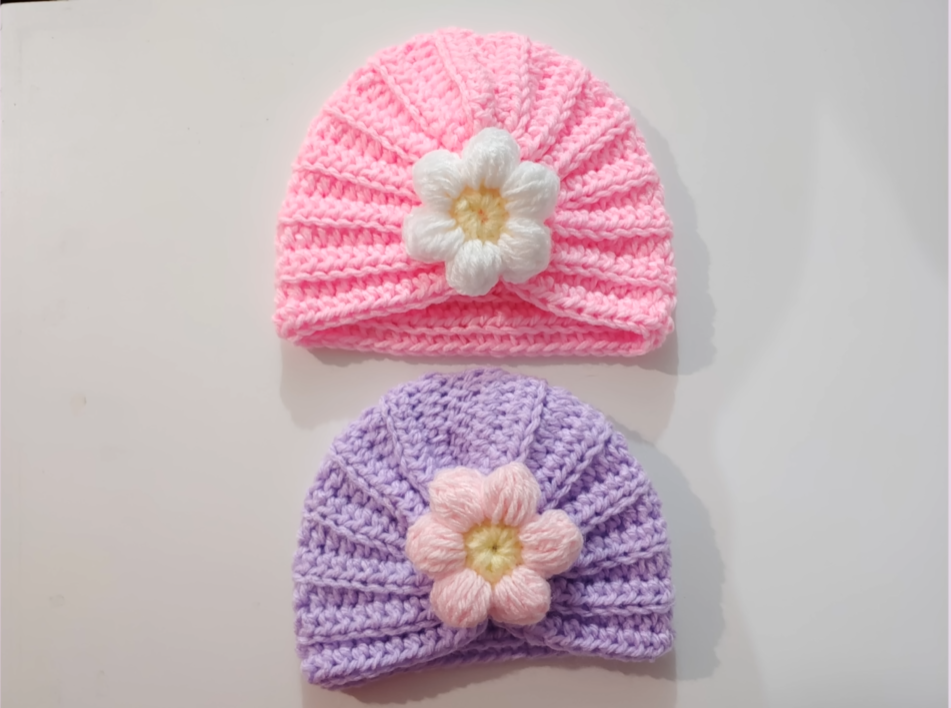 Give your little one a touch of chic style with this gorgeous Ribbed Turban Hat! This pattern uses the simple yet effective back loop only technique to create a beautiful, stretchy ribbing that mimics knitting. The classic turban crossover and sweet 3D flower appliqué make it an adorable accessory perfect for any season.