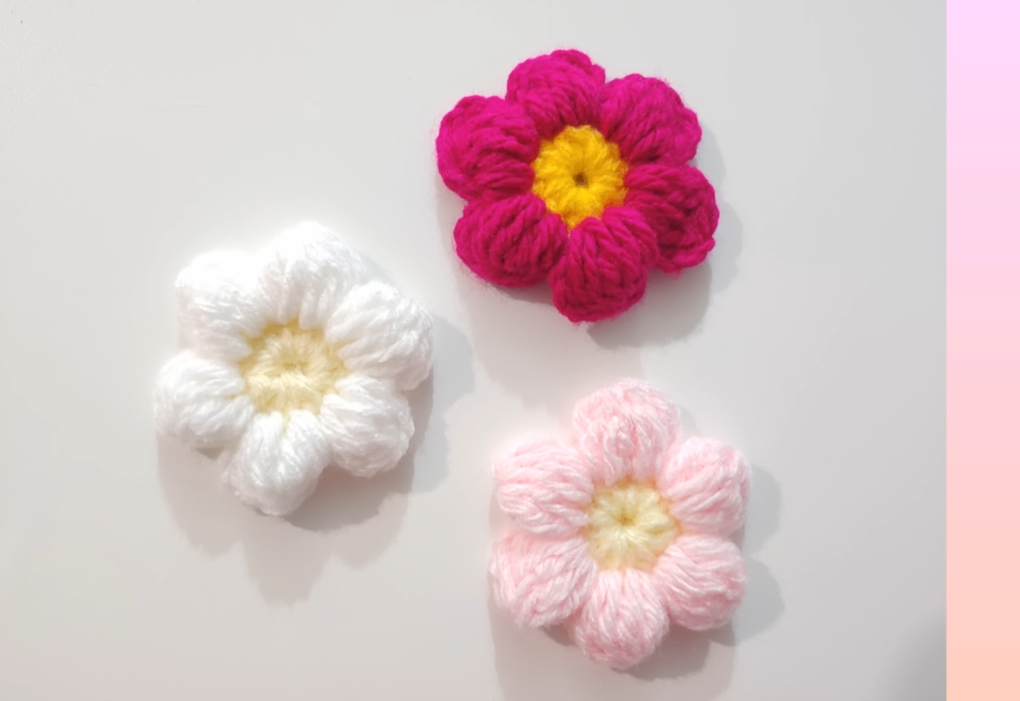 - Repeat the [Small Petal, sl st] sequence 5 more times. Sl st to the beg sl st. (6 petals) Fasten off CC1.
