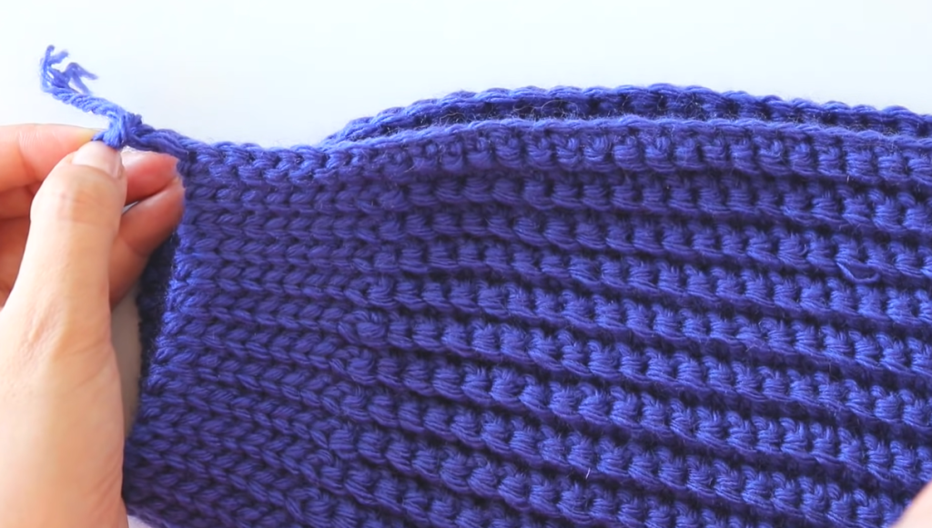 Joining Row: Fold the rectangle in half, bringing Row 60 and Row 1 edges together. You can use one of two seaming methods: