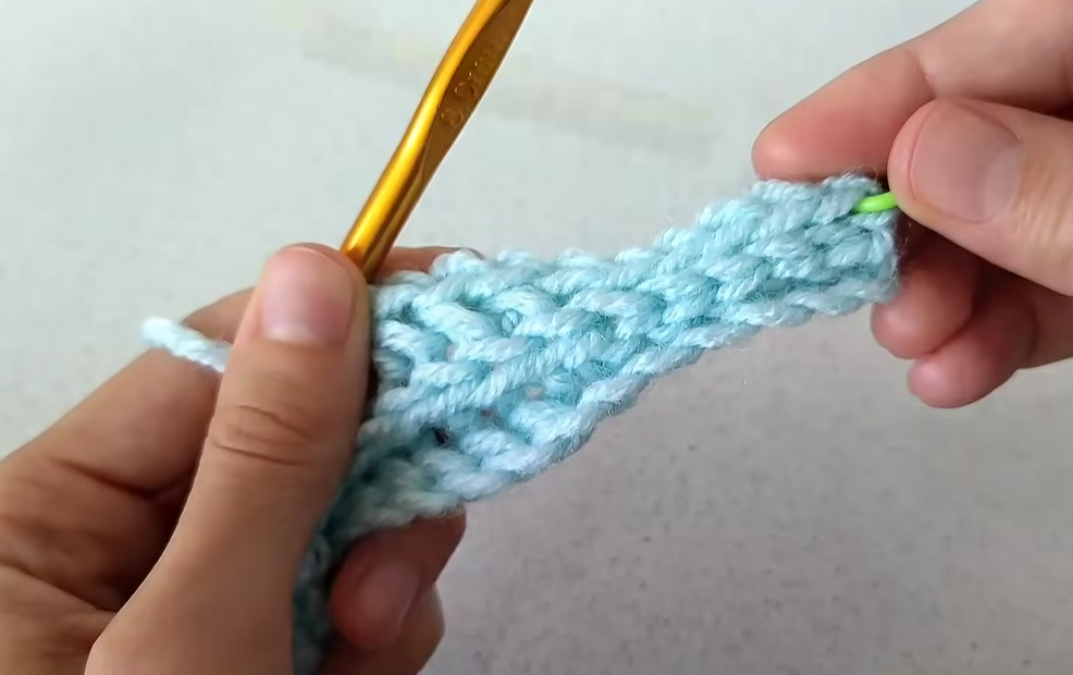 • Seam Stitch: Work the final stitch of each row into BOTH loops of the final stitch of the previous row. This creates a sturdier, cleaner edge for seaming.