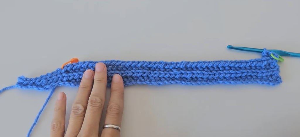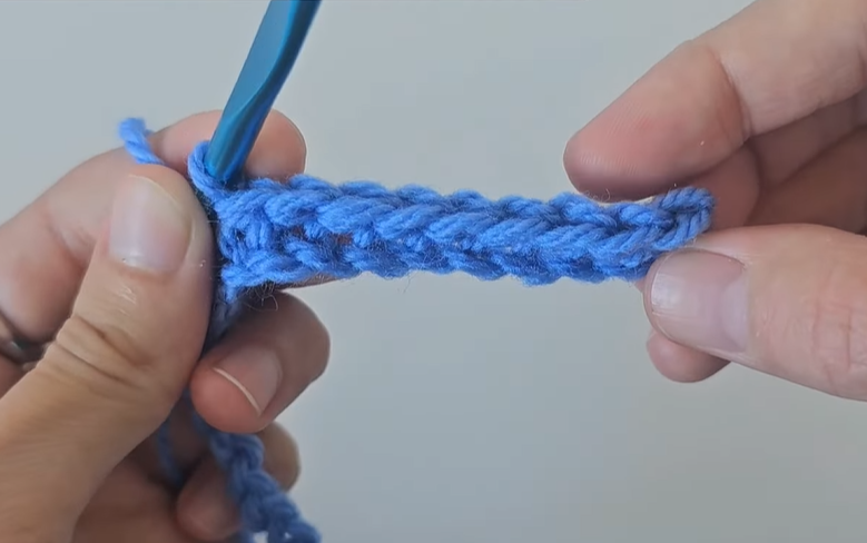 - Row 2 (Ribbing Established): Work 1 hdc in the BLO of each st across. Ch 1, turn. (44 hdc)
