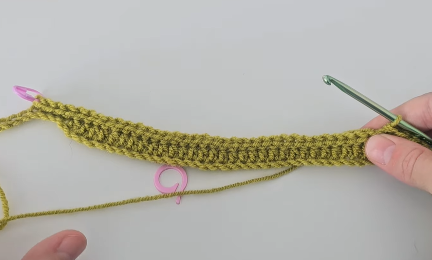 - Row 2 (Ribbing Established): Work 1 hdc in the BLO of each st across. Ch 1, turn. (41 hdc)
