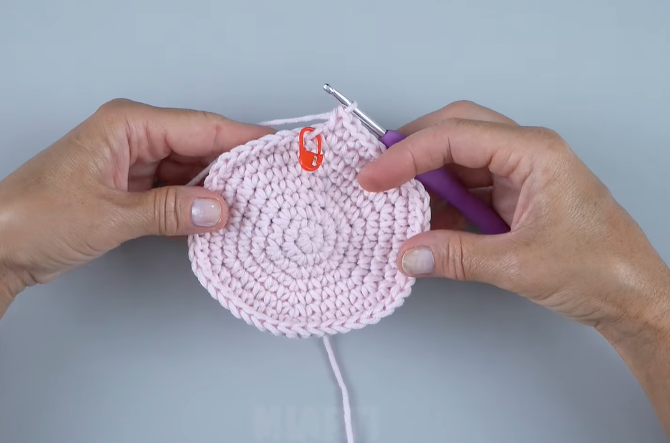 The Crown is worked in continuous rounds of Single Crochet, using the spiral method of increasing to form a flat, even circle. We will use the standard increase every round by 6 stitches method.