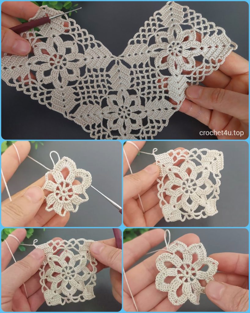 Note: The pattern is worked in joined rounds. The ch-3 at the beginning of DC rounds counts as the first dc.
