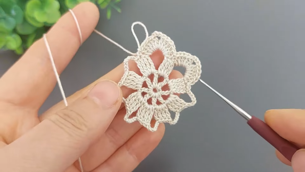 This round establishes the 8 points and the lacy holes between them.