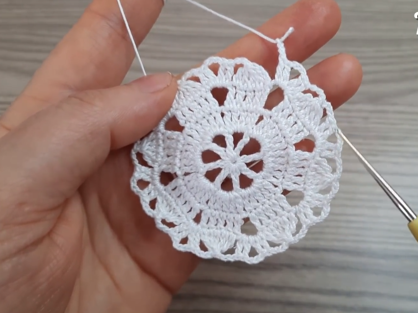 - Wet Blocking: Since this motif is delicate lacework, wet blocking is essential to flatten the piece and define the six scalloped points.