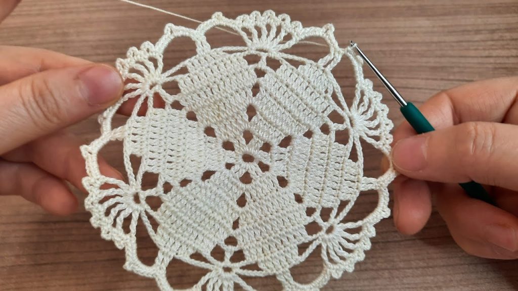 Blend the structure of a square with the softness of a circle with the Sunburst Square Doily! This captivating design features a dense, solid center shaped into a square using a filet crochet grid, which then explodes into a radiant, scalloped, circular lace border. It’s a wonderful intermediate project that offers great practice in shaping and combining different stitch types, resulting in an elegant piece perfect for coasters, centerpieces, or joining together for a unique runner.