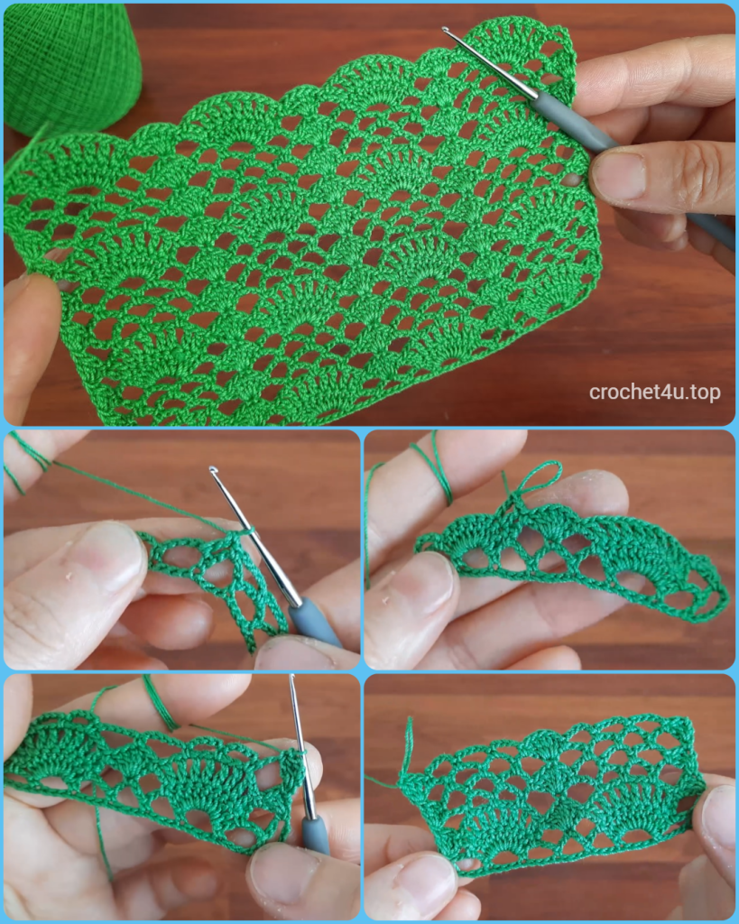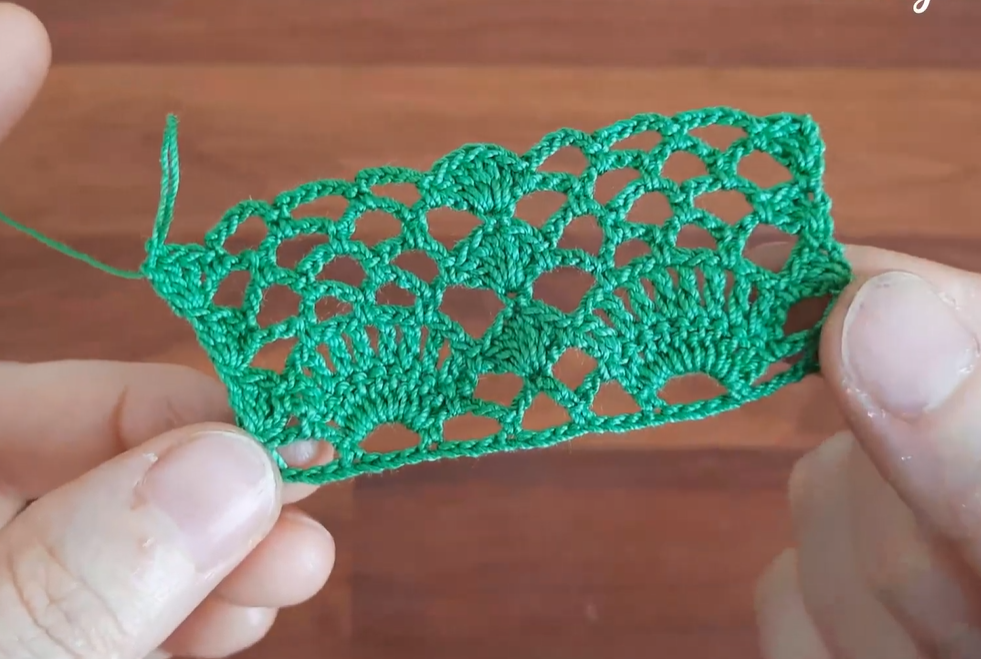 - Repeat Row 4 and Row 5 until your panel reaches the desired length. The image appears to show 4 full rows of the Fan/Shell motif.