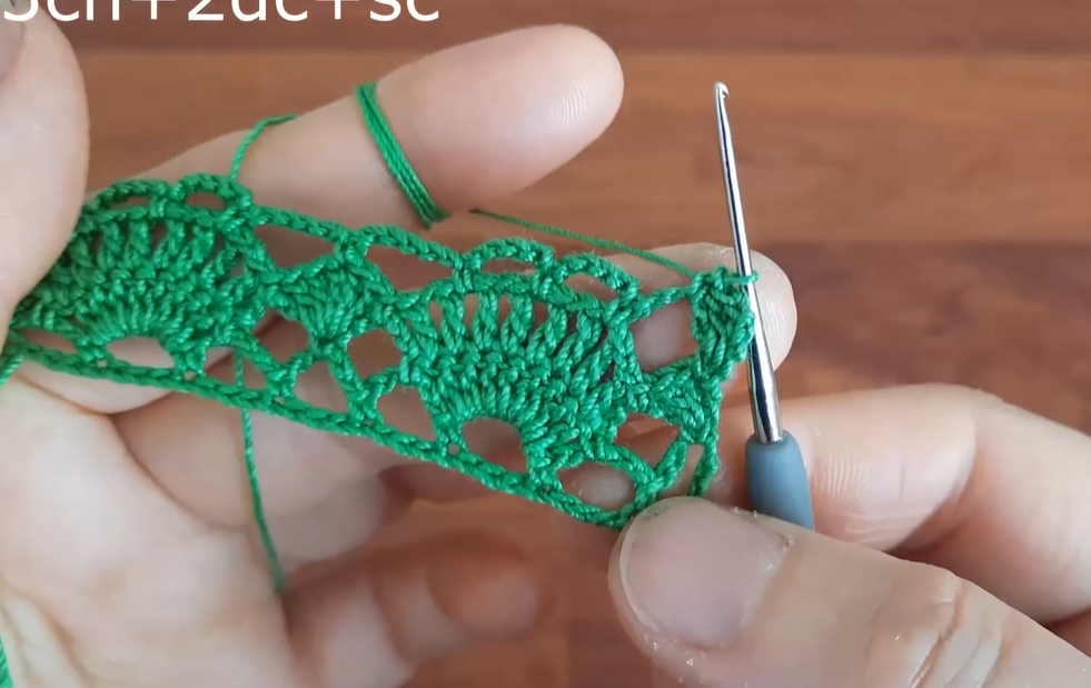 - In the next sc, work 7 dc (this is a Shell).