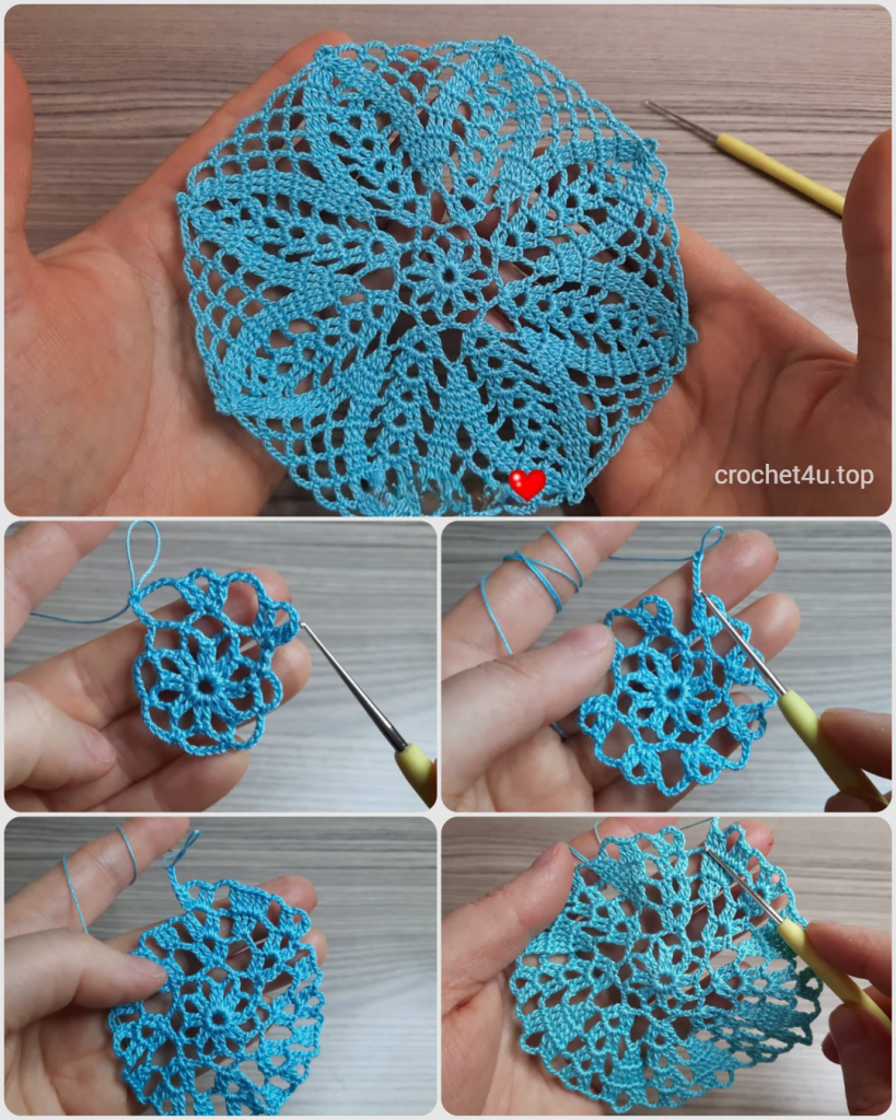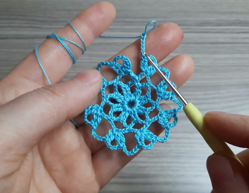 This final section adds a delicate picot edge to finish the motif and hold its shape.