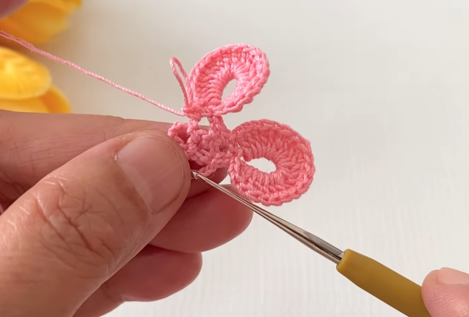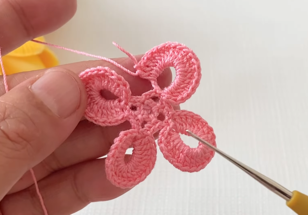 • sl st into the ch-7 corner space until you reach the center (4th ch).