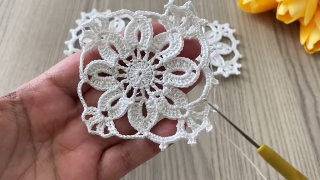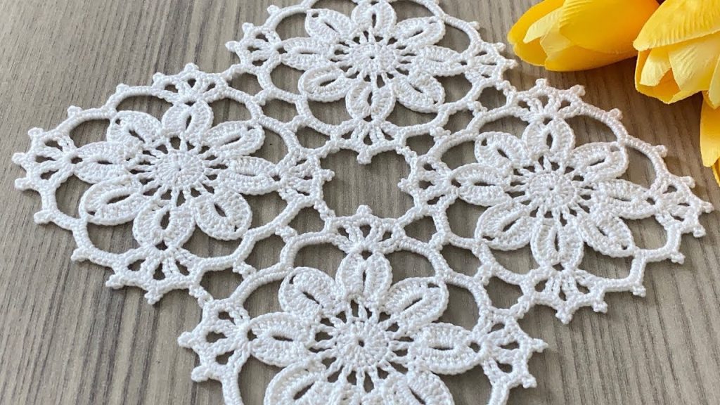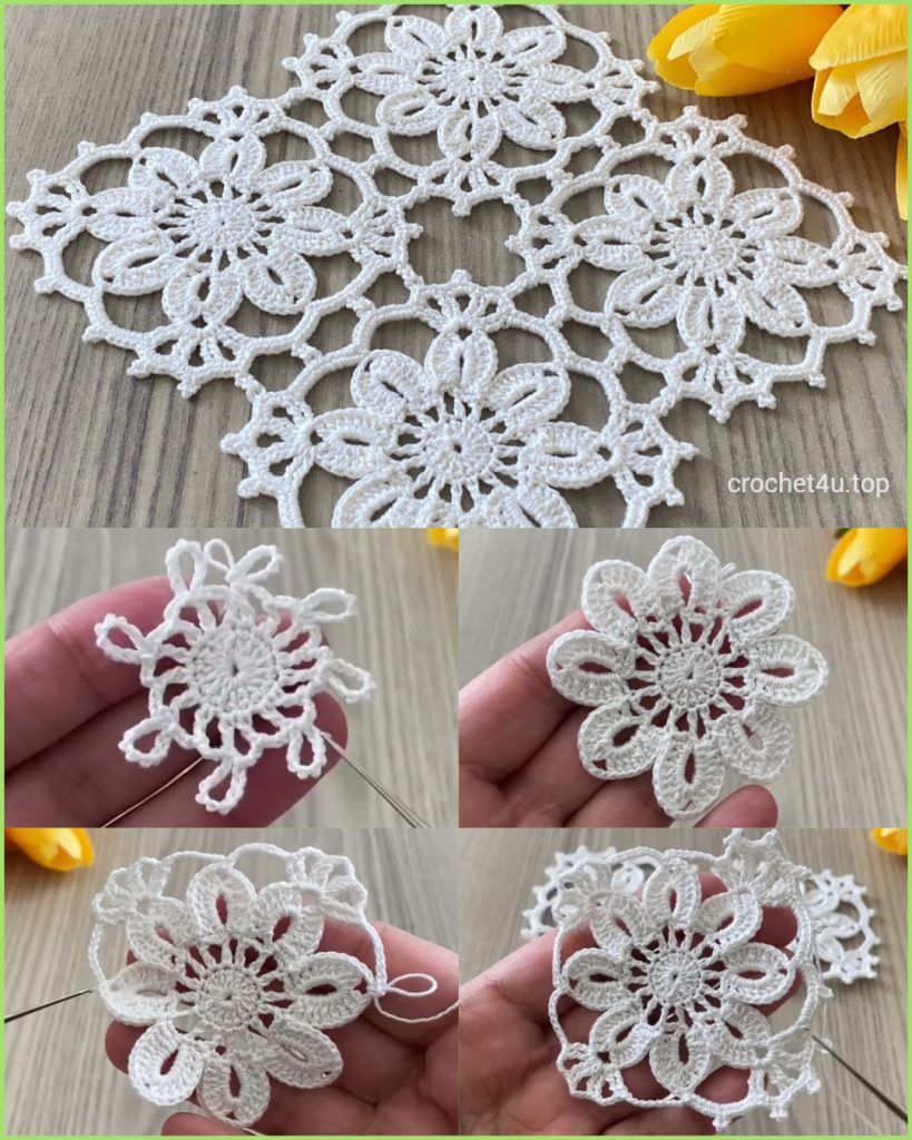 Welcome, fellow fiber artists! Today, we are embarking on a project that combines four delicate floral lace motifs into one breathtaking square centerpiece. This technique, known as modular crochet, allows you to create large, intricate pieces by focusing on smaller, manageable units. The image shows four beautifully designed floral medallions joined by a lacy lattice, resulting in a show-stopping doily.