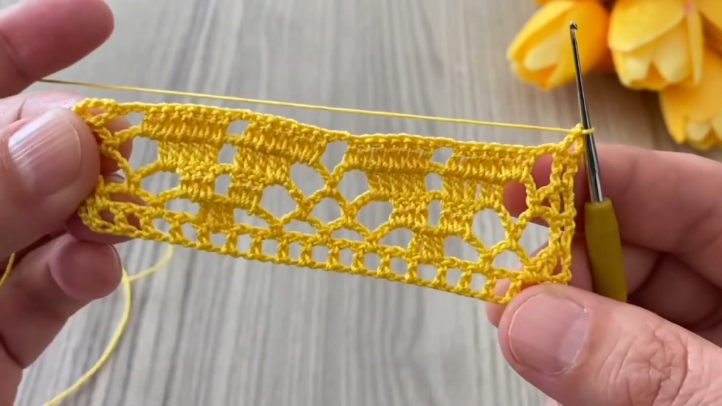 • Repeat Row 3 (Lattice Row) and Row 4 (Fan Row) until your piece reaches the desired length.