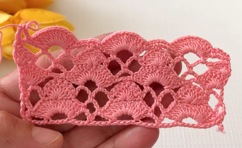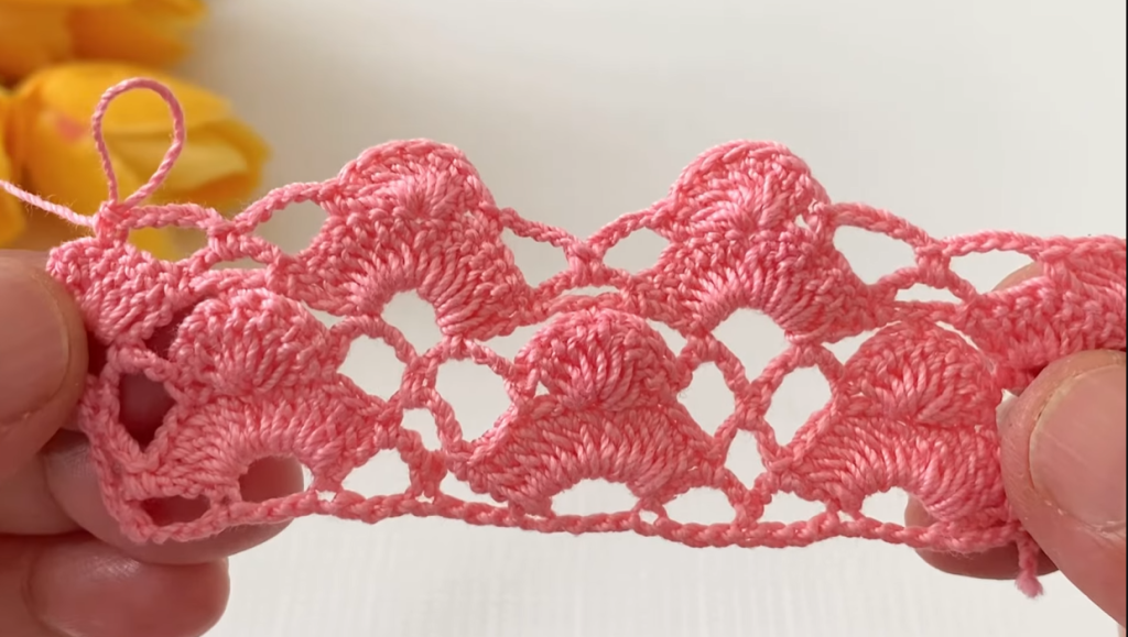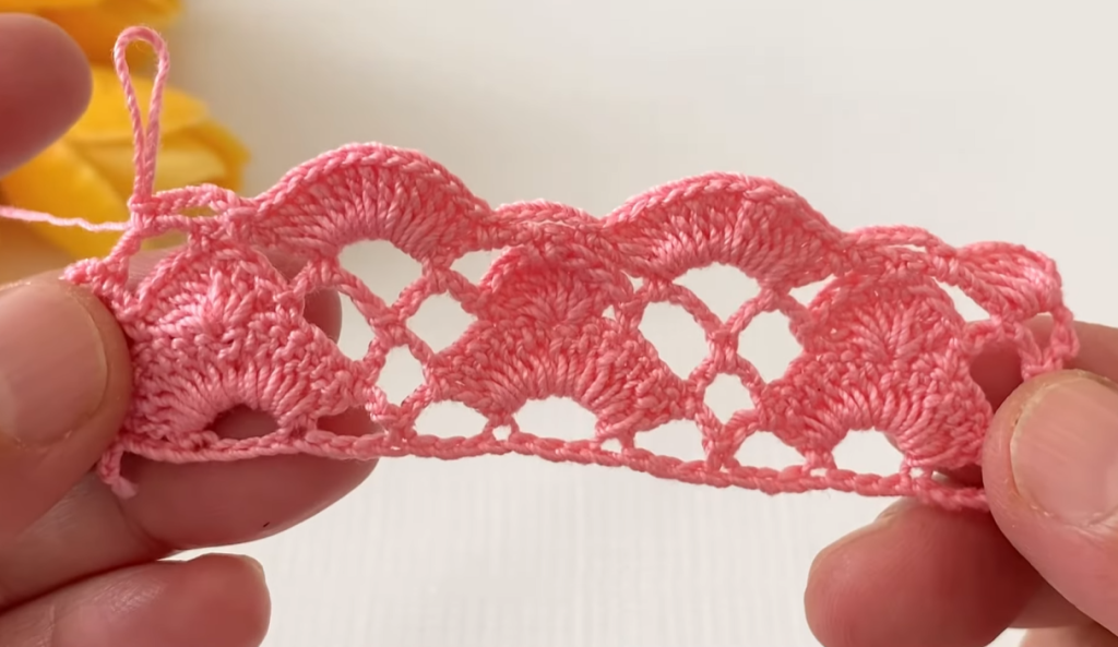 - T-pins and Blocking Board: Essential. Blocking opens up the netting and defines the scalloped edge.