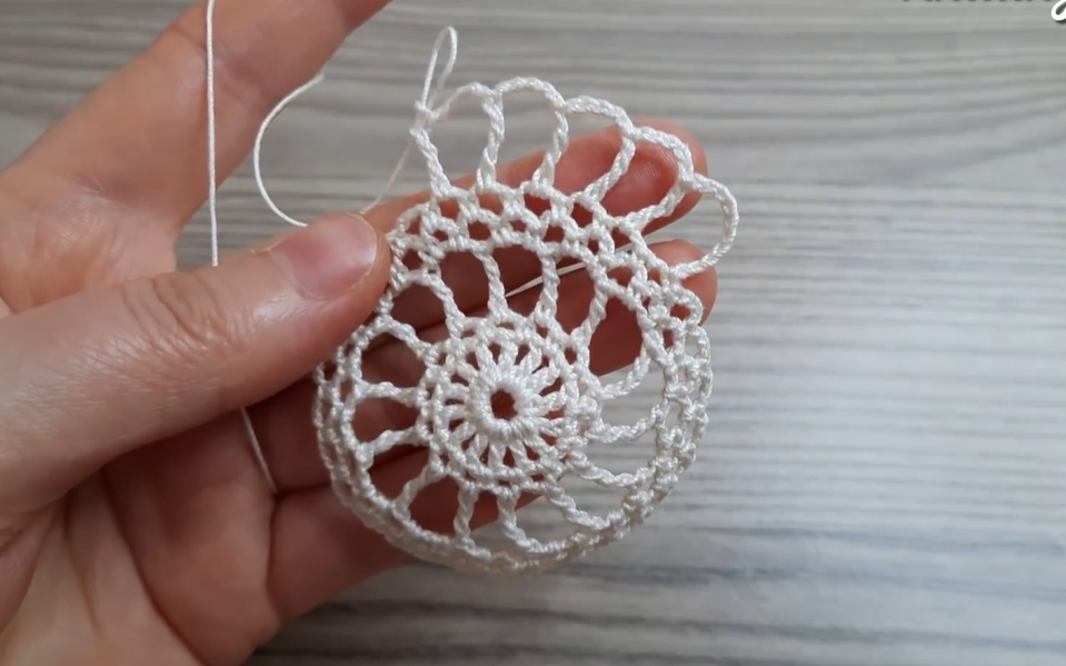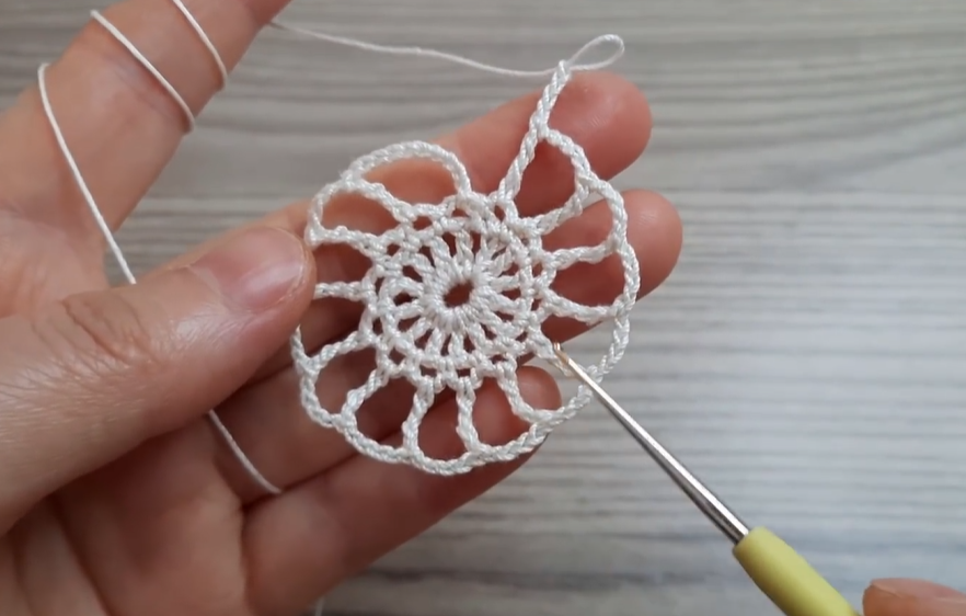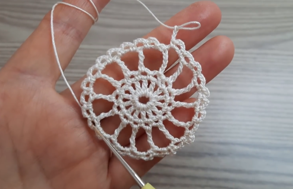 - Sk the last st. Sl st to the 3rd ch of the starting ch 5 to join. (18 ch-2 spaces)