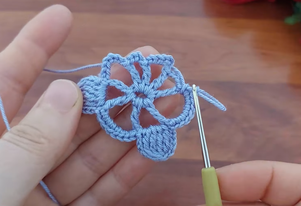 - *Ch 6, sl st into the 3rd ch from the hook (forming a ch 3 loop for the next petal).
