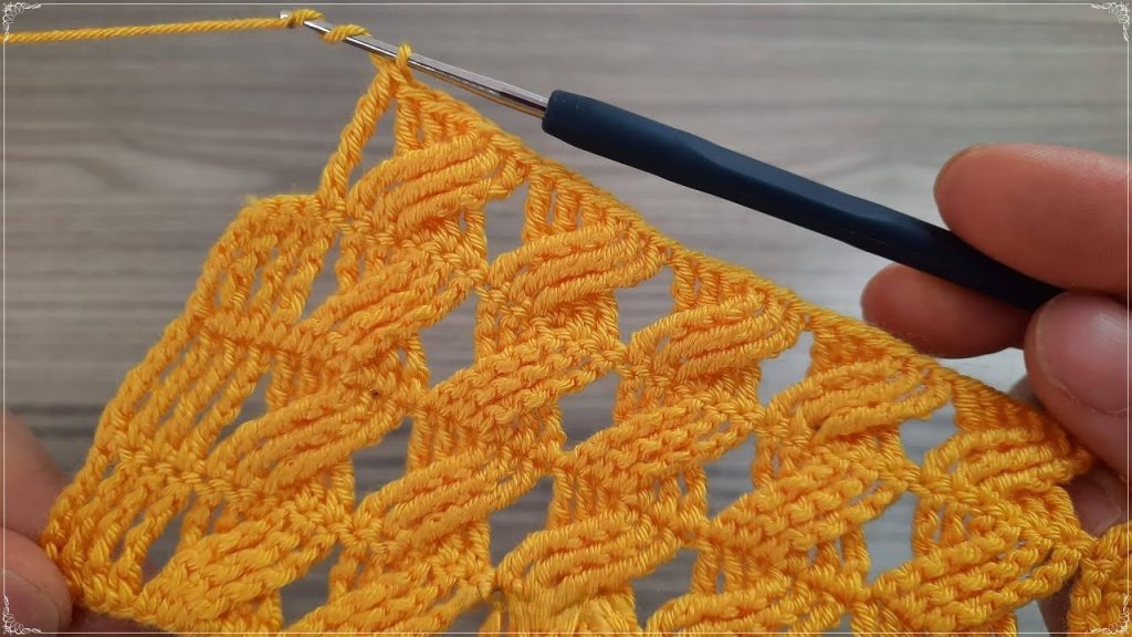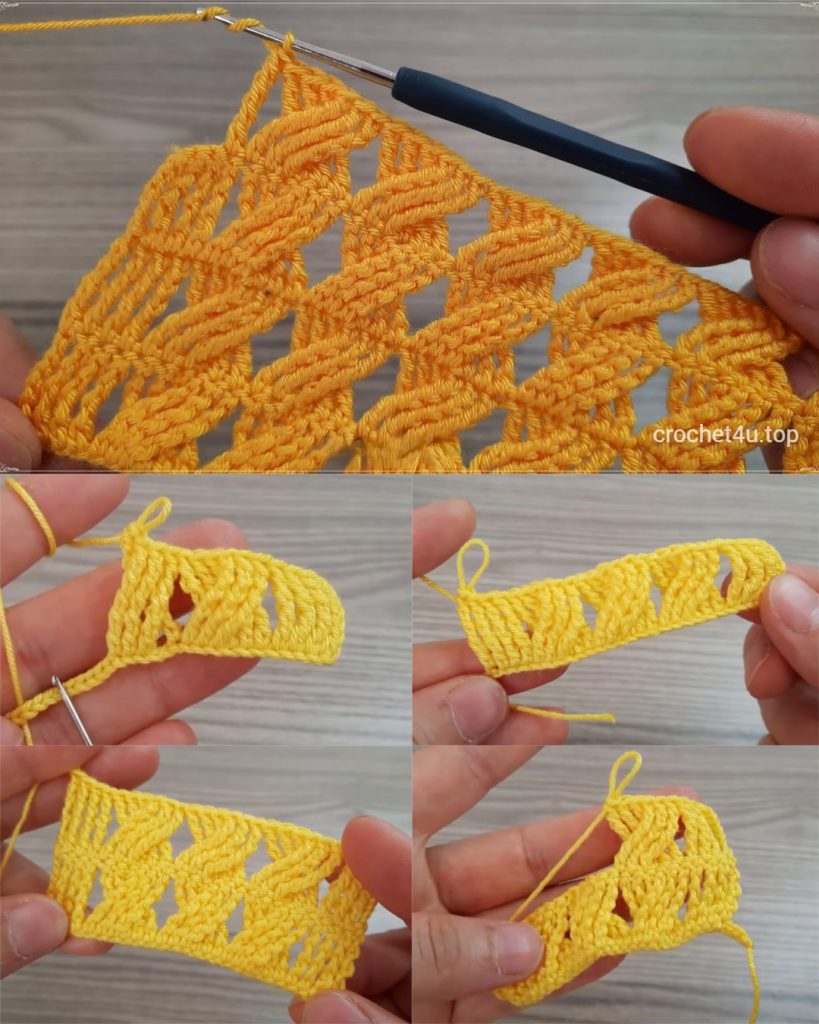 This pattern relies heavily on tall post stitches to create the dramatic crisscross effect. We’ll use US Crochet Terms.