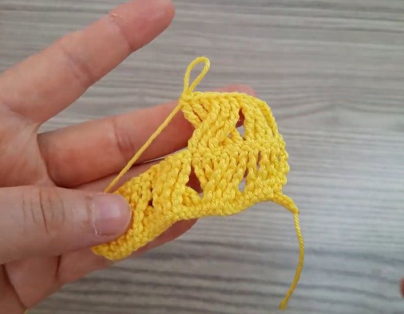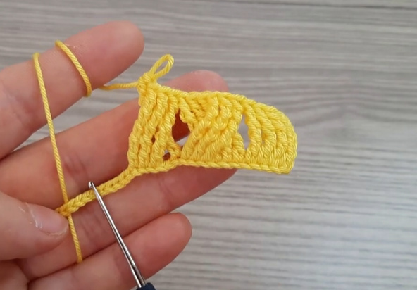 - Ch 2, sk 1 dc, dtr in the top of the turning ch-3.