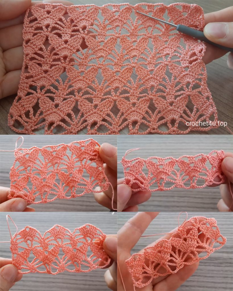Welcome, fellow texture enthusiasts! Today’s pattern is one of breathtaking elegance. The fabric you see above—a beautiful, repeating fan or leaf motif that creates a diamond lattice—is the “Willow Leaf Lace.” This pattern produces a flowing fabric with incredible drape, making it perfect for shawls, light throws, or even a stunning summer skirt.