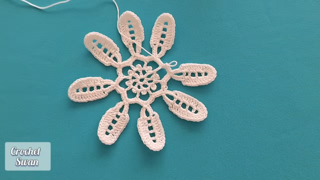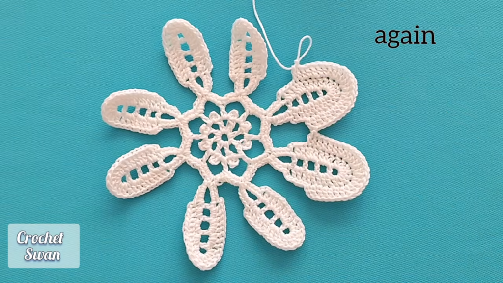 - Start: 3 DC in the first Ch-5 sp.