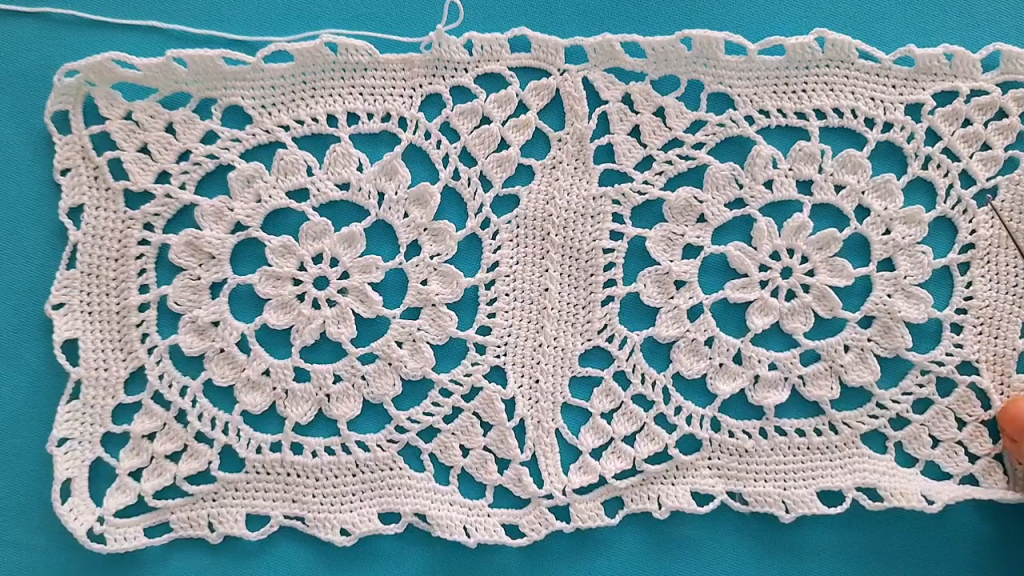 This pattern is a fantastic way to play with colorโyou can use one color for a classic look or three contrasting shades to emphasize the central flower and the lace detail.