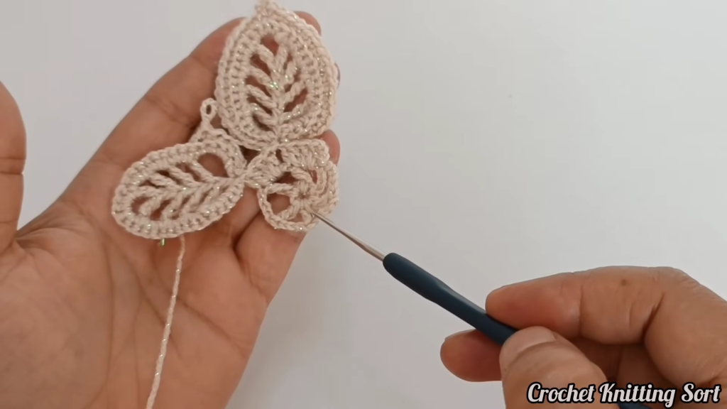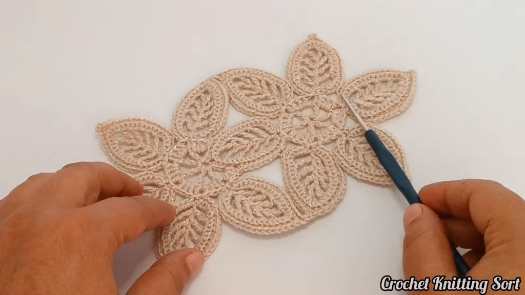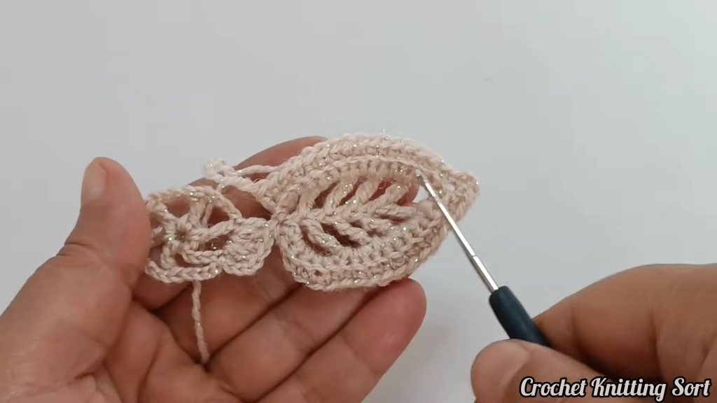 This row is your transition row. It sets up the new chain spaces exactly above the gaps between the petals of the row below, ensuring the 3D texture stacks perfectly.