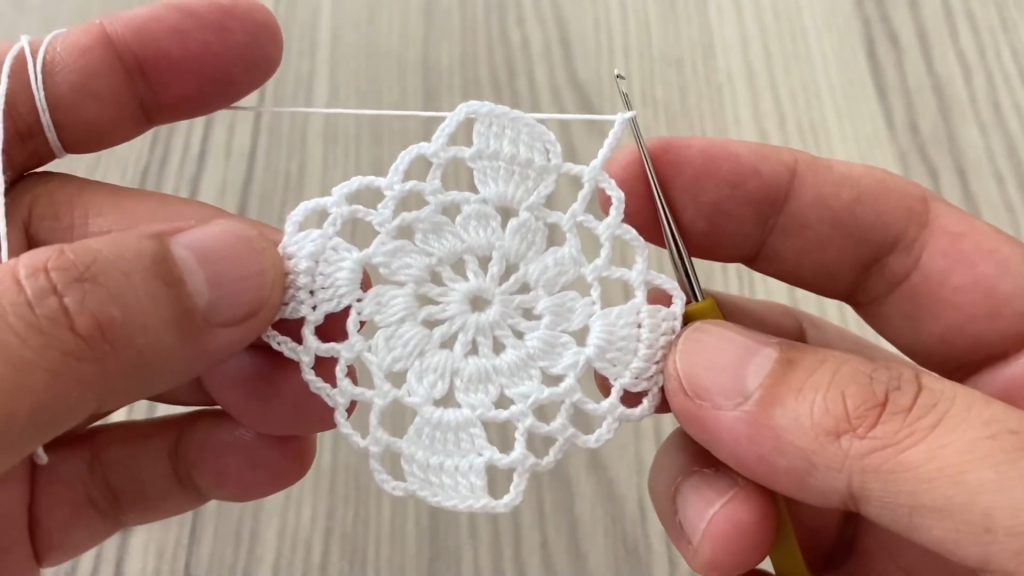 - Finding the Ch-1 Sp: In Row 4, the Ch-1 Space is the small loop you created in Row 3. It will be slightly tucked under the row above. Make sure your shell is worked securely into this space to ensure the shell “cascades” neatly.