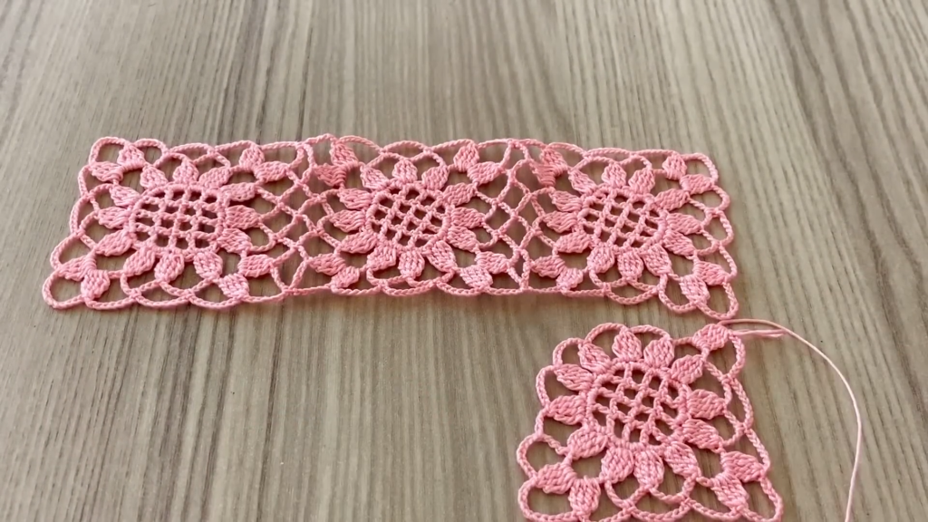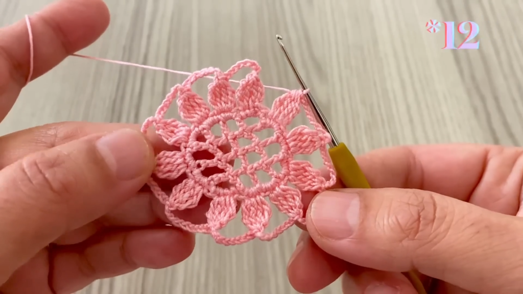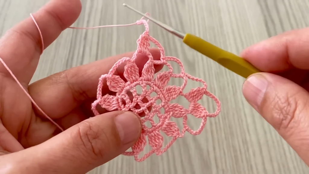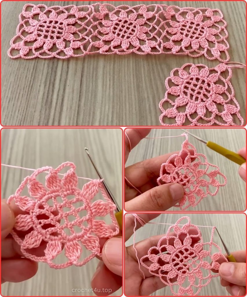 This motif is worked in 8 rounds, transitioning from a dense circle to a delicate square.
