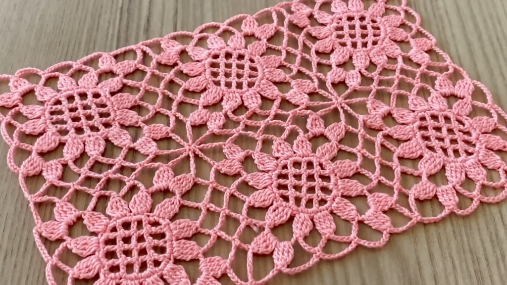 This pattern relies on the Popcorn Stitch to create the central floral dimension.