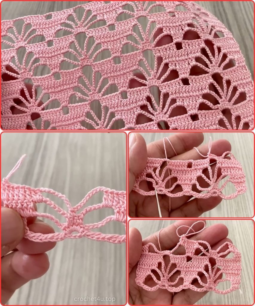 Hello, dear makers of beautiful things! The pattern featured in the video is a classic beautyβa perfect example of delicate lacework that adds an elegant, summery feel to any project. I have translated its sophisticated drape into the Ocean Tide Lace Stitch. This original design uses dramatic fan (shell) clusters interspersed with open mesh, creating a repetitive wave-like pattern that is fully reversible and remarkably airy. Itβs the ultimate stitch for warm-weather projects like shawls, bohemian tops, or decorative runners.