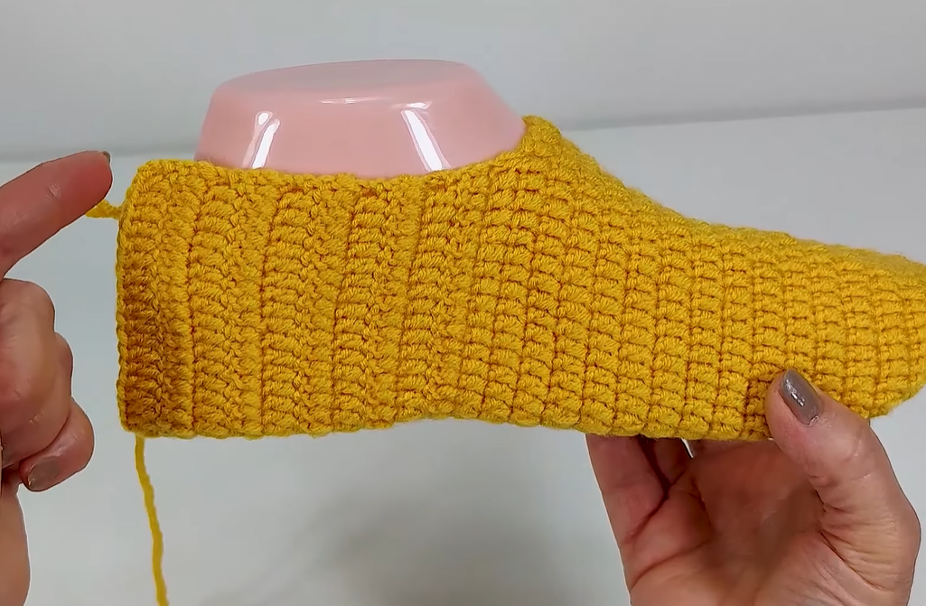 - The toe should cover your toes and the widest part of your foot. If needed, work one more round of SC around without increases.