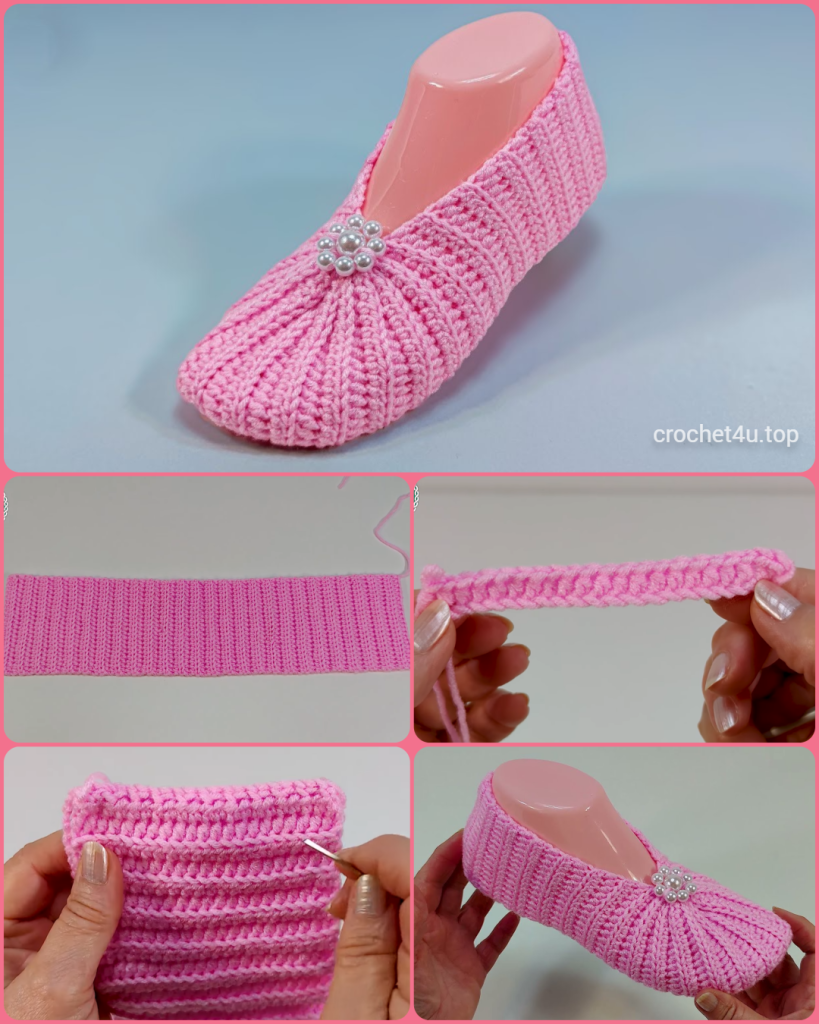 - Why it matters: The BLO ribbing stretches significantly. Getting the width (starting chain) and the length (rows) right according to your gauge is essential for the slipper to wrap snugly around your foot.