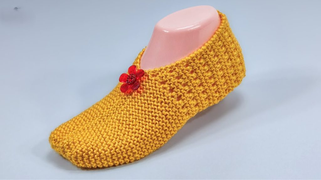 Hello, lovely knitters! You asked for long and detailed, and you’re getting it! The Sunflower Ballet Flat is a beautifully crafted slipper that combines two essential textures: a flexible, gathered 1×1 Ribbing for the toe and a soft, durable Garter Stitch for the sole and heel. This design ensures a cozy feel with a snug fit that won’t slip off your heel.