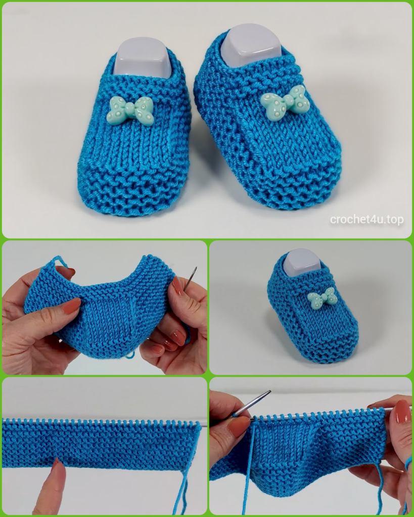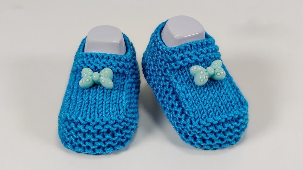 - Buttonhole Row: K2, K2tog, yo (yarn over), K to end (or reverse for the second bootie).