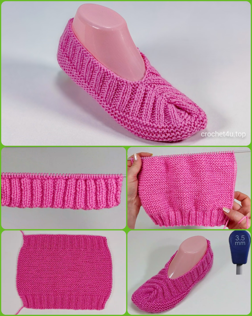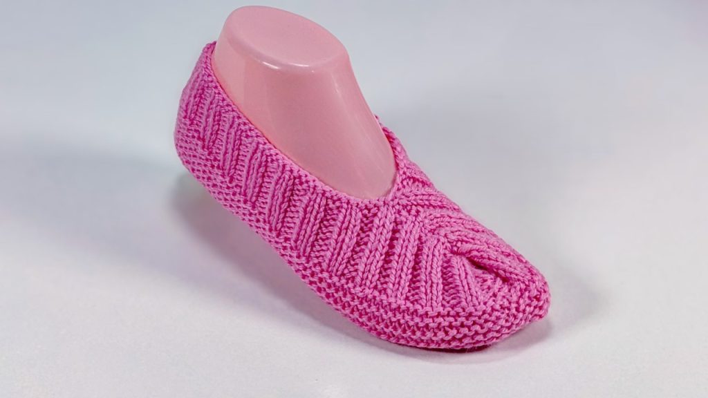The slipper is worked flat as a single piece, starting at the cuff/ankle opening.