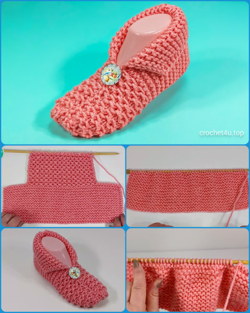 🌸 The “Cozy Button Cuff” Knitted Slipper Pattern