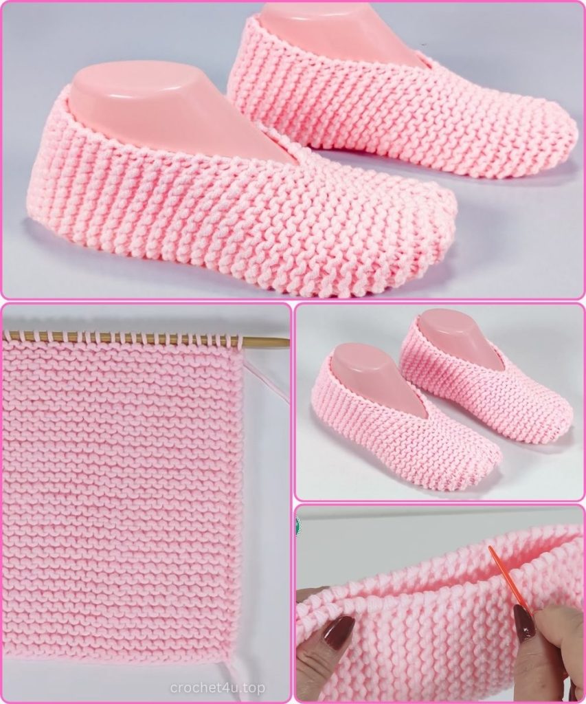 The entire slipper body is worked flat in Garter Stitch (knitting every row). Ensure you are consistent with the special edge technique!